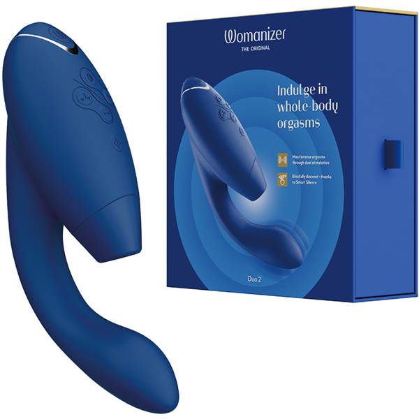 <吸引・震動/USB充電式>挿入と吸引が同時にできる大人気のウーマナイザーDUOがDUO2に進化!吸引振動の強弱段階は12段階から14段階へパワーアップ。さらにクラシック2の限定機能だった「アフターグロー機能」を搭載。オーガズムの際、電源ボタンを短く押すことで吸引も挿入部の振動も最弱の振動となり、余韻を楽しむことができます。●カラー:ブルーベリー※こちらの商品は受注発注商品の為、ご注文から発送までに3、4営業日掛かる場合が御座います。