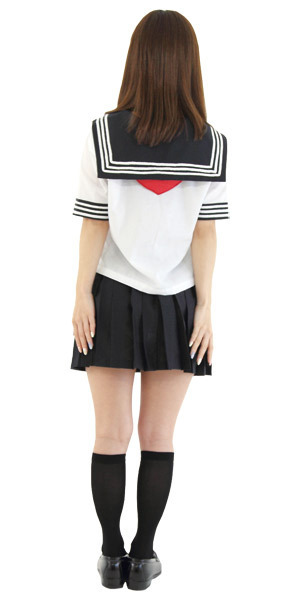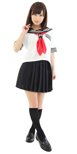 赤いスカーフがポイント!人気の定番セーラー服コスプレ(L)。涼しげな夏服仕様の半袖タイプ!セーラー襟や袖のオーソドックスな3本ラインでリアル感を演出!ミニ丈のプリーツスカートがちょっぴりセクシーなスクール系コスチュームです。※LLサイズ(b17522)あります。