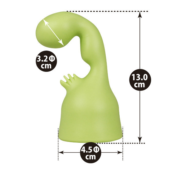 大きめヘッドがGスポ直撃!快感を得ながら膣トレもできちゃう、電マ用アタッチメント。ポップなグリーンカラーの本体は不思議なフォルム!ですが、最大径3.2cmの先端部分がGポットを、さらに根元のクリブラシがクリトリスをしっかりと刺激してくれるんです。素材はお肌に優しい医療用グレードのシリコン素材を採用。ヘッド直径4.5cmの電マに装着してご使用ください。※「フェアリーミニ(k00003)」「フェアリーターボ(k00164)」「フェアリーリチウムチャージ(k00006)」等に装着可能です。