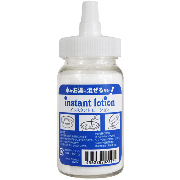 水かお湯に溶かすだけ!手軽にローションを自作できるローションパウダー(100g)。携帯しやすいボトル入りなので、必要な時に必要な分だけ新鮮なローションを作れます。お好みの粘度に調整できるのもポイント!アロマオイルを混ぜて貴方だけのオリジナルも作成可能です。一本で約9リットル分(360ml×25本)ものローションを作れるので、コストパフォーマンスにも優れています。防腐剤等は一切使用せず、食品添加物のみで作られた安心安全な一品です。