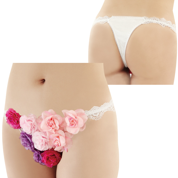 <EROX>まるで秘密の花園?カラフルローズが華麗に咲き誇るレディースショーツ。●ピンク・赤・紫の薔薇モチーフを贅沢に使用●両サイドはエレガントなレースデザイン●お尻をセクシーに魅せるTバックタイプ。芳しい花の香りが漂ってきそうな立体モチーフでデコレーションしたゴージャスな盛りショーツ!バックのシンプルデザインとのギャップで魅せる、とびきり華やかなセクシーランジェリーです。