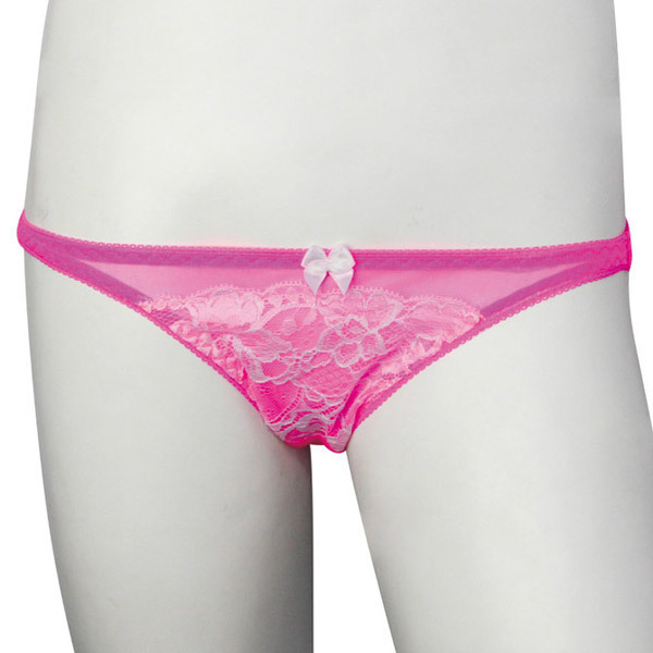 重ねたレースがエレガント!透け感とキラキラ感が美しいスパークハーフ素材のフルバックショーツ。●素肌を透かすピンクシースルー地●フロントに刺繍レース&リボン付き●履きこみしっかりフルバック仕様。透け感の高いシースルー素材にレースを重ねてエレガントに仕上げたセクシーランジェリーです。