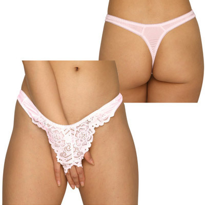 HOME> ランジェリー > オープン ブラ・ショーツ(穴あき) > トリコット&レース生地オープンクロッチTバック ピンク