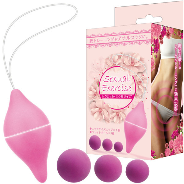 膣圧向上で美ボディへ♪膣圧を鍛える『ケーゲルトレーニング』に効果抜群な膣トレグッズ「セクシャルエクササイズ」。重さの異なるウェイトボールが3種類付属しているので負荷調節が可能!エクササイズエッグ内部へ入れるウェイトボールの大きさや数によって、自身に合った重さ調節や刺激の変化を楽しめます。膣トレだけでなく、アナルプラグとしても使えるマルチなラブグッズです。素材:ABS樹脂(硬質)。