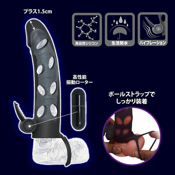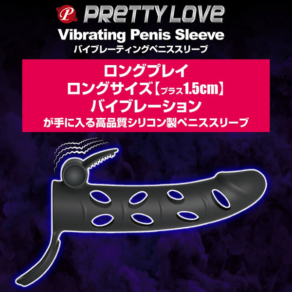 ロングプレイ、ロングサイズ、振動快感がこれ一つで全て揃う究極の電動ペニスサック「プリティラブ バイブレーティングペニススリーブ」。ひと回り大きなムスコでパートナーを責めたい!そんな願望を叶える高品質シリコン製の電動サポートグッズ。装着するだけで+1.5cmサイズUPの先端アンコ入りタイプ!安定したプレイを可能にする固定用の玉掛けリングや、クリトリスを刺激する着脱可能な高性能ミニローター&ブラシ突起も装備しています。また、本体側面にホールがあるので挿入感を損なうことなくプレイ可能です。