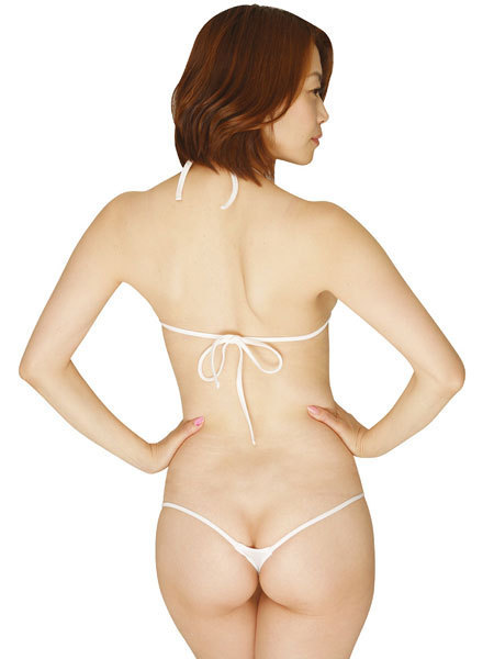 2wayストレッチ素材だから着心地も抜群!縦にも横にも伸びるマイクロブラ&Tバックです。こちらは定番カラーのホワイトで男性ウケも抜群!小さな三角形のブラと、ほとんど隠せていないショーツがなんともセクシーですね。ブラジャーの後ろ部分はリボン結びとなっています♪ほどける紐デザインで彼の心もメロメロ!いつもと違いちょっぴり大胆になりたいときにもどうぞ。
