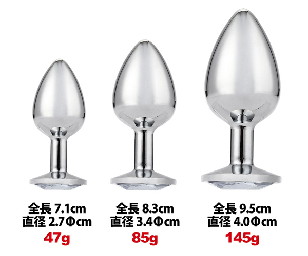 スタンダードなデザインのアナルプラグの3個セット!ステンレス製の重量感のあるタイプです♪大・中・小の3種類で、用途や拡張にあわせて選べる3サイズセット。アナルプラグを使ったアナル快感開発用のステップアップグッズとして用いることのできるアイテム!ステンレス製なので、他とは一線を画している美しさと、重量感が自慢。「温め」や「冷却」で刺激が変わるメタルボディは、使用後に煮沸消毒可能で、衛生的に保管できますよ♪