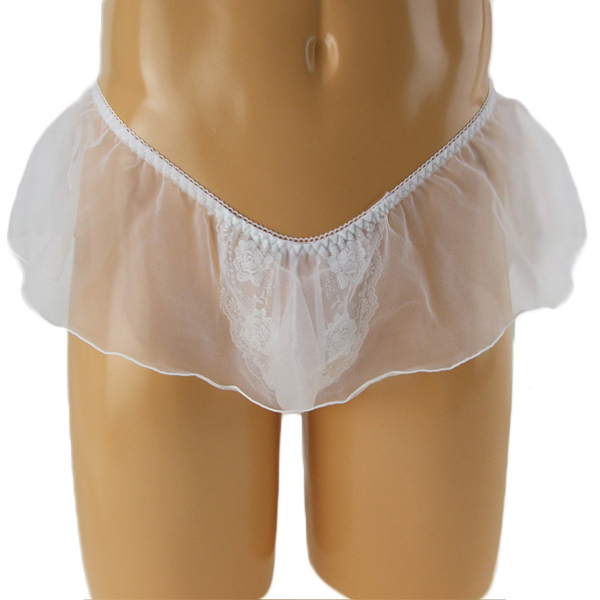 HOME> ランジェリー > メンズ ショーツ・ビキニ > メンズ シースルースカート付きレース刺繍Tバック (ホワイト)