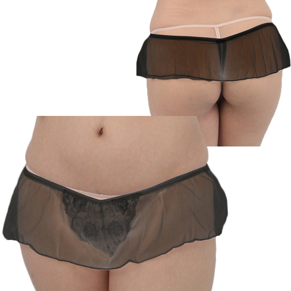 HOME> ランジェリー > ショーツ > レディス シースルースカート付きレース刺繍Tバック ブラック