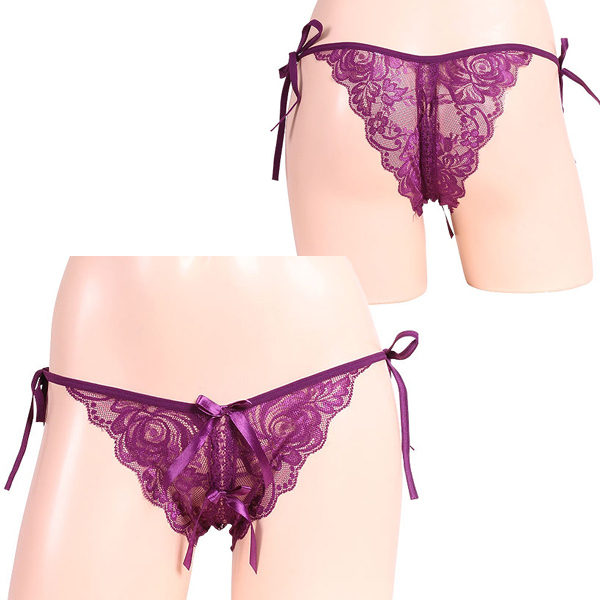 HOME> ランジェリー > オープン ブラ・ショーツ(穴あき) > 女らしさ満開サイドリボンオープンショーツ パープル
