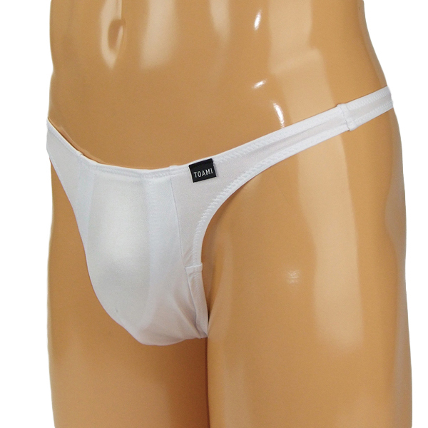 HOME> ランジェリー > メンズ ショーツ・ビキニ > メンズ 光沢ストレッチ生地玉袋付きTバック Mホワイト