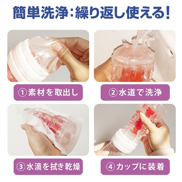 全体に絡みつく超刺激的な使用感が特徴の非貫通オナホ「CRYSTAL」。内部構造が違う3タイプからチョイスできるカップホールでこちらはハードな刺激タイプとなっています♪挿入すると前半からブロックヒダや最奥の突起部分が先端の尿道をハードに刺激!ハードな素材を採用しているのでギミックをしっかりと感じられるのが特徴です。ローション付。