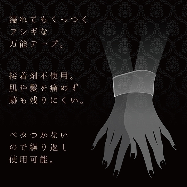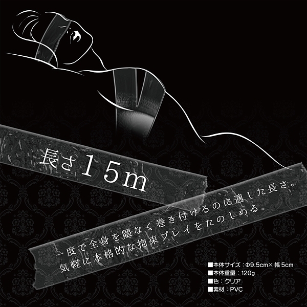 SMプレイの必須アイテム<ボンデージテープ>!気分で色を変えたいお客様の声にお応えし女体を彩る業界最多の7色をラインナップ!ノリを使わない万能テープで服や髪・肌を傷めず、お手軽カンタン拘束プレイ!濡れてもくっつく不思議な万能テープ科学の力でテープ同士が吸着。ベタつかないので片付けも簡単。髪や肌、繊細なグッズやテーブルにも安心して使えます。●カラー:クリア