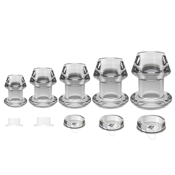 SMVIPトンネルプラグ(2XL)は、最大サイズで圧倒的な存在感を提供する中空プラグです♪先端は丸い台形デザインで、くびれのある形状がしっかりとフィットし、抜けにくい安定感を実現します!透明な大口径ホールを採用しており、内部が確認できる設計となっているため、さまざまな工夫やアイデアで楽しむことができます♪キャップが付属しており、挿入後に締めることでストッパーとして機能し、安心して使用できるのが特徴です!また、キャップを締めたまま外出したり、特別なシーンでの使用にも対応可能です♪2XLサイズならではのしっかりとしたフィット感が、より深い満足感と安定感を提供します!このトンネルプラグは、多様なプレイをサポートし、自由な発想で楽しめるアイテムとして、より充実した時間を演出します♪