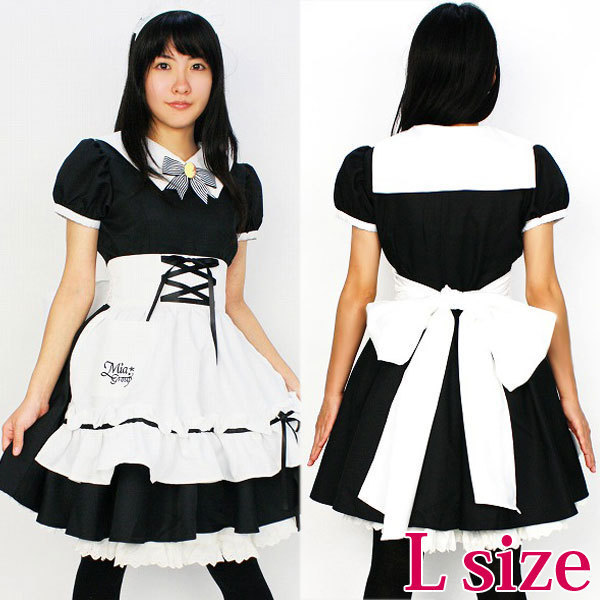 人気メイドカフェのオフィシャル制服「ミアリラクゼーション制服(L)」。ボリューム感たっぷりのパフスリーブとフリルスカートがとっても可愛い、黒白カラーのメイドコスチューム!キュートな付け襟とエプロンも必見です。※靴下は別売。水洗い不可、塩素系漂白剤による漂白不可、アイロンは中温で当て布使用、ドライクリーニング可。色落ちの可能性があります、ご注意ください。※こちらの商品は在庫の状況によりお届けまでに4日〜7日程度かかる場合がございます。