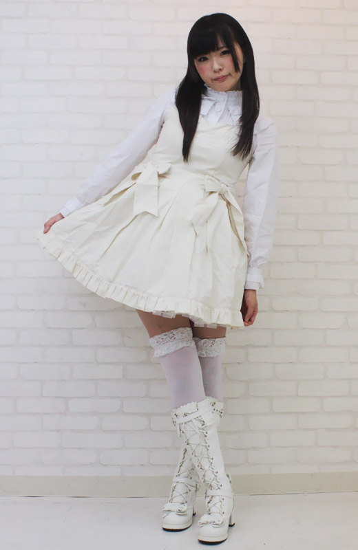 ふんわりフリルが可愛いロリータ服!クラシカルなオフホワイトのジャンパースカート&長袖ブラウスセット(BIG)。パニエが一体型になっているので、ふんわり感を簡単に出せます。ウエスト両サイドのリボンが印象的!背面の編み上げはバックスタイルをキュートに見せてくれます。胸元の刺繍モチーフなど、細部に至るまでデザインにこだわったロリィタコスチュームです。※水洗い不可、塩素系漂白剤による漂白不可、アイロンは中温で当て布使用、ドライクリーニング可、色落ちの可能性があります。※こちらの商品は在庫の状況によりお届けまでに4日〜7日程度かかる場合がございます。