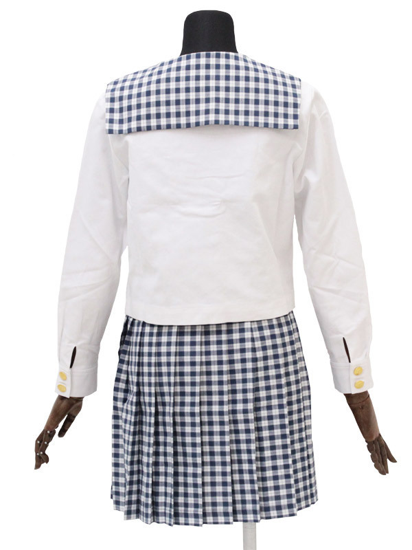 フロントと袖口の金ボタンがポイント!紺色ギンガムチェックのセーラー服コスプレ。●オールシーズン対応可能な長袖の中間服●短め丈のセーラーブラウスは前開きボタン仕様●胸当てはスナップボタンで取り外し可●プリーツスカートのウエストはアジャスター調整式●大きいさんも着られるBIGサイズ。お嬢様学校風にとことん可愛らしく仕上げた制服コスチュームです。※水洗い不可、塩素系漂白剤による漂白不可、アイロンは中温で当て布使用、ドライクリーニング可、色落ちの可能性があります、ご注意ください。※こちらの商品は在庫の状況によりお届けまでに4日〜7日程度かかる場合がございます。