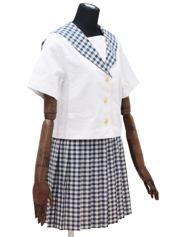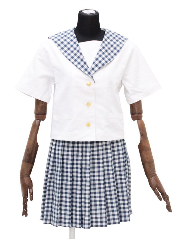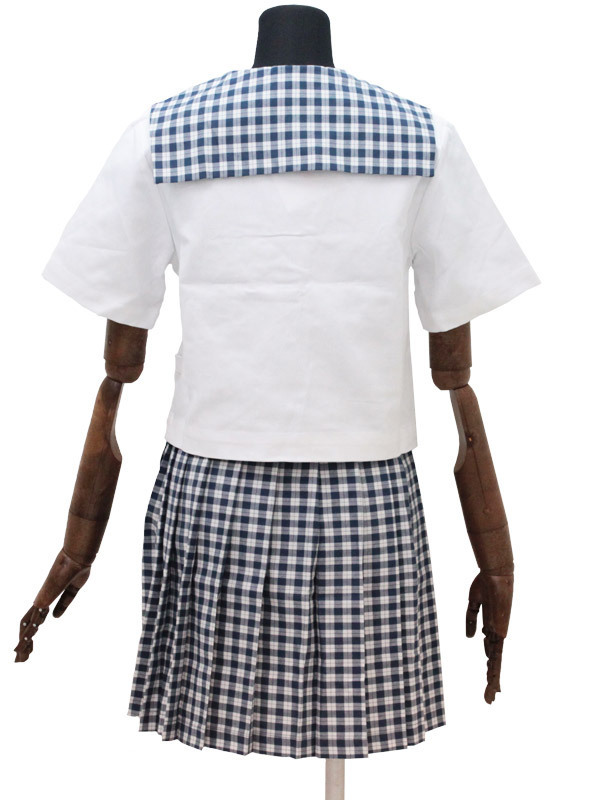 白と紺のギンガムチェック柄がラブリー!私立学園に通うお嬢様風のセーラー服。●男性も着用できるBIGサイズ●胸当て付きの大きなセーラー襟が激カワ●蝶の模様を刻んだゴージャスな金ボタン●膝上丈プリーツスカートのウエストはスライドアジャスター調節可能。上下のバランスが絶妙!個性的なデザインで制服姿を可愛く魅せるコスチュームセットです。※水洗い不可、塩素系漂白剤による漂白不可、アイロンは中温で当て布使用、ドライクリーニング可、色落ちの可能性があります、ご注意ください。※こちらの商品は在庫の状況により、お届けまでに4日〜7日程度かかる場合がございます。