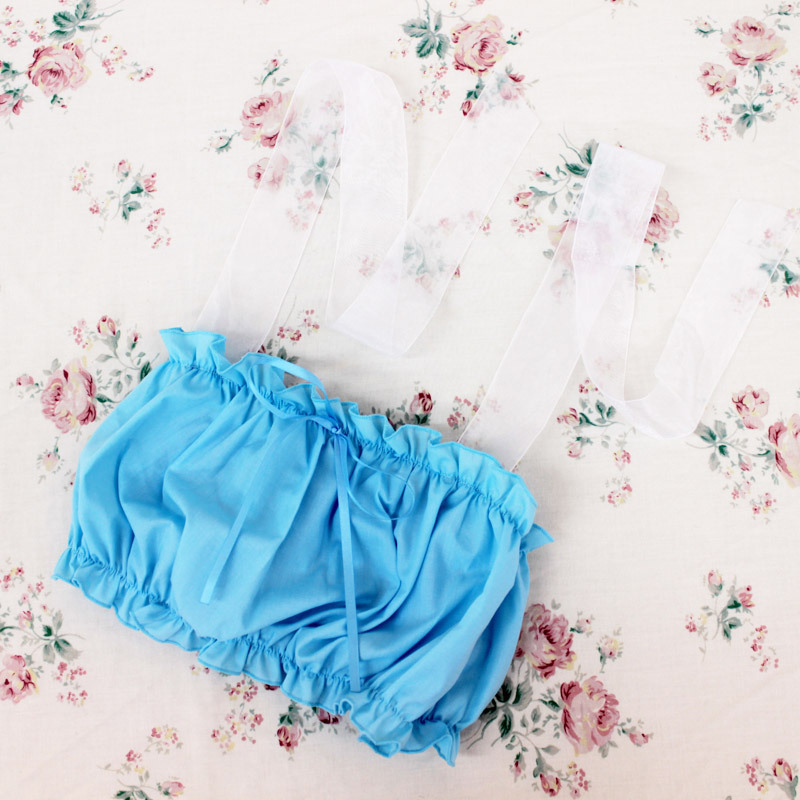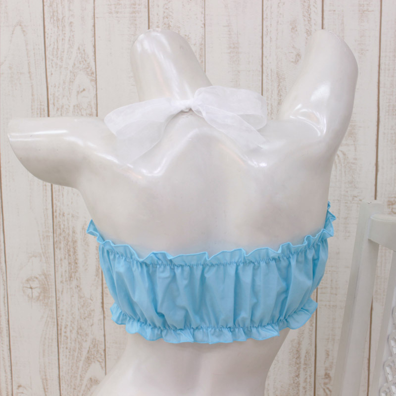 見せブラOK!たっぷりギャザーが超可愛い、水色のチューブブラジャー単品。●女装子さんも着用できるBIGサイズ●ずり落ち防止・白いシフォンリボンを結んでホルターブラにチェンジ●縫いこんだストレッチゴムのおかげでボディにフィット●胸元にキュートな細いリボン飾りをあしらいました。ファッションアレンジが楽しい乙女チックなランジェリーです。※水洗い不可、塩素系漂白剤による漂白不可、アイロンは中温で当て布使用、ドライクリーニング可。※こちらの商品は在庫の状況によりお届けまでに4日〜7日程度かかる場合がございます。