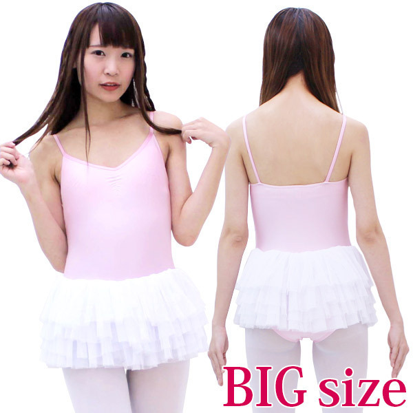 チュールスカート付きキャミソールレオタード ピンク×白 BIG