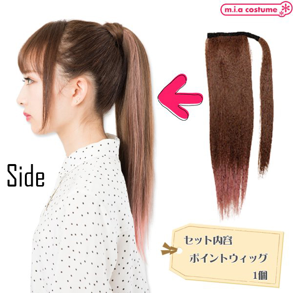 手軽に使える着脱式の耐熱ポイントウィッグです。マジックポニーで簡単イメチェン♪二つ使えばツインテールにもアレンジ可能!地毛に馴染みやすいサラサラの毛質です。発色の良いライトブラウン×ピンクのカラーリングはライブなどのイベントにもおススメ!※商品は一つ入りです