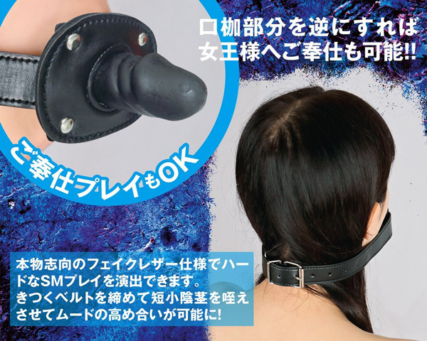 苦痛と快感を与える調教シリーズに新アイテム登場!超ミニなリアルディルド付き口枷。●口枷・短小陰茎ver●高級フェイクレザー素材を採用●奉仕プレイも可能なミニディルド付き●サイズ→ベルト調節可能。パートナーの悶える姿を見たいならディルドをお口に…、ご奉仕プレイがご希望ならディルドを外側に向けて装着!様々なプレイを楽しめるSM調教グッズです。別売りの同シリーズ「首枷(e22507)」と併用すれば、わんこプレイも楽しめます。