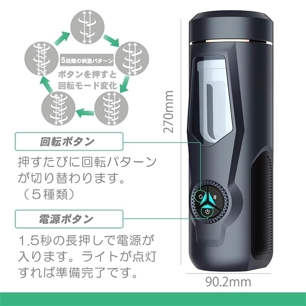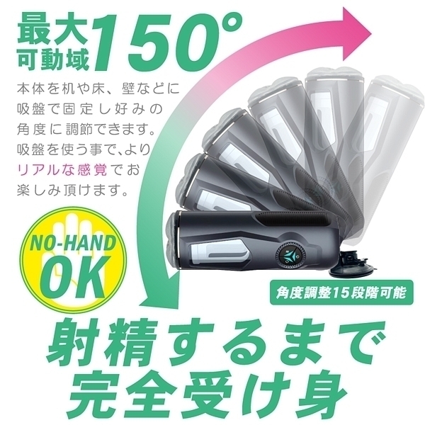 亀頭責めに特化したピストン&回転の電動ホール。5+5パターンの多彩な動きで激しく責め立てる。ピストンと回転で亀頭を強力に刺激する電動ホールです。ピストン+反時計回りの回転パターンが5種類、ピストン+左右への回転パターンが5種類と、計10通りの動作パターンを搭載。操作パネルもシンプルなので直感的な操作が可能です。インナーは簡単に取り外して洗えるので常に清潔な状態を保てます。壁や床などに設置したまま最大150度の角度調整が可能な、強力吸盤も付属しています。