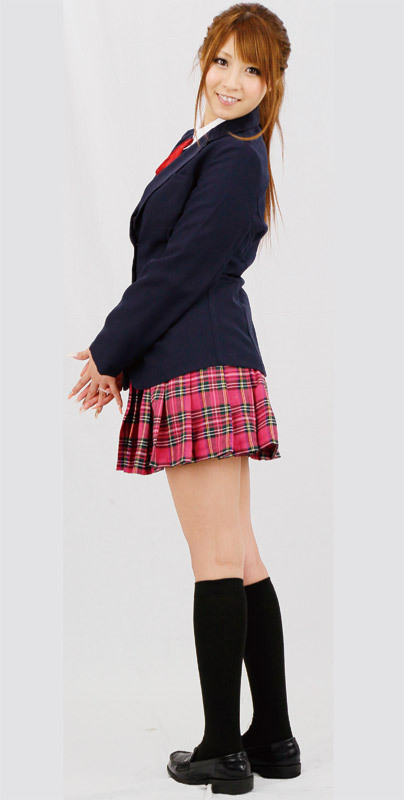 元気いっぱいのキュートな女子校生に変身!シンプルな二つボタンのブレザーに、チェック柄スカートをあわせた制服コスチューム。リボン付きブラウス、ブレザー、スカート、さらにハイソックスまでセットになった充実の制服コスプレです。※サイズはおおよその目安となります。表記のサイズを基準に前後でお考え下さい。