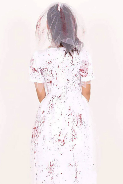 ハロウィンパーティーの主役間違いなし!鮮血が映える純白のウエディングドレス。●ゾンビ風の血のり加工済み●燕尾ラインの花嫁ドレス●シンプルなベールもセット。ホラーなダメージ加工が超リアル!血に染まるウエディングドレスで、ハロウィンナイトをたっぷり楽しめちゃうゾンビの花嫁コスチュームです。※ストッキングは付属しません※こちらの商品は受注発注商品の為、ご注文から発送まで2〜3営業日掛かる場合が御座います。
