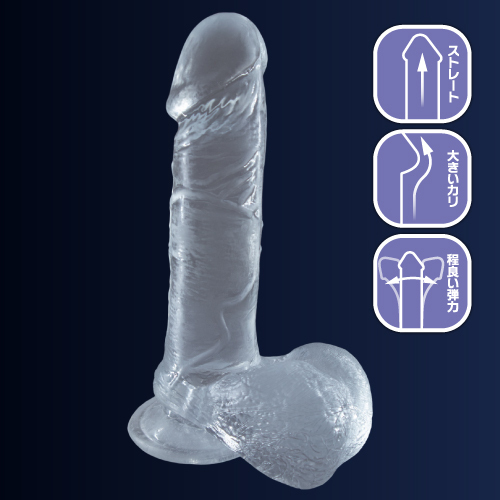 先っぽから根元までずっぽりと太く真っ直ぐ奥まで届く「クリアディルド(Lサイズ)」。ストレート形状で大きなカリ、そして程よい弾力が特徴で、平均的な日本人サイズのペニスでは体験できない快感が味わえるのが自慢です♪太く、まっすぐ向き合う太い俺!透明ディルドで吸盤付きで、挿入感がたまらないので太さと大きさを求めている方におすすめです♪