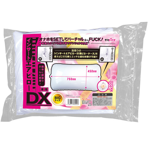 大小2個のホール装着ポケット付き♪ロングボディのリアル抱き枕「インサートエアピローDX」。●インサートエアピローのDX版●縦の長さが75cmへサイズUP●上下に大小のホールポケット●大:直径約10cm、奥行き約18cm●小:直径約6cm、奥行き約14cm●あらゆるサイズのホールに対応可●別売りの専用ケースも装着OK。二次元嫁とヴァーチャルセックス♪タマトイズの人気抱き枕、インサートエアピロー(tm0613)がDXに進化!抱きしめながら腰オナしやすい約75cmの等身大サイズになりました。別売りの専用オリジナルカバーを装着すれば、さらに臨場感もアップします。●メーカー型番:TAMS-111