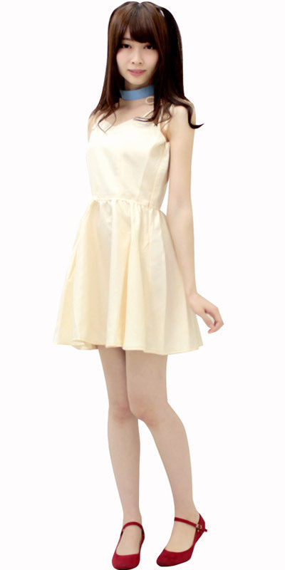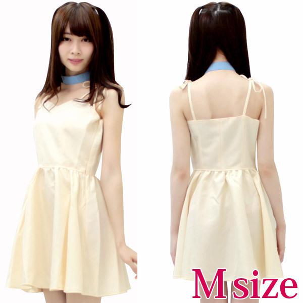 デイリーにも使えるシンプルデザイン!女の子らしさ溢れるフレッシュカラーのワンピ&チョーカーのコスチューム2点セット。●パステルイエローのキャミワンピース●優しい色合いの水色チョーカー●長さ調節可能な肩紐リボンで可愛らしさをプラス●クビレをキュッと見せるウエスト切替デザイン●ふんわり広がるフレアスカート●横ファスナー&バスト部に裏地付き●チョーカーはマジックテープで簡単に着脱可。爽やかなおめかしワンピースのコスプレ衣装です。※水洗い不可、塩素系漂白剤による漂白不可、アイロンは中温で当て布使用、ドライクリーニング可、色落ちの可能性がありますのでご注意ください。※こちらの商品は在庫の状況によりお届けまでに4日〜7日程度かかる場合がございます。