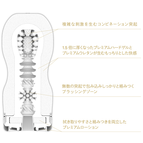 大好評につき定番商品化!極上の締め付け感を誇るプレミアム テンガにハードエディションが登場。新たに設計された内部ディテール、高弾力に特別配合されたゲル、しっとりと包み込む高級ウレタンフォーム、拭き取りやすいプレミアムローション、その全てが高品質。高弾力ゲルと内部ディテールによる強烈な刺激を、高級ウレタンが程よく緩和することで、ただキツいだけではない、極上のしめつけを生み出します!高品質の素材と、熟練した技術を凝縮したプレミアムでハードな感触をお楽しみください。