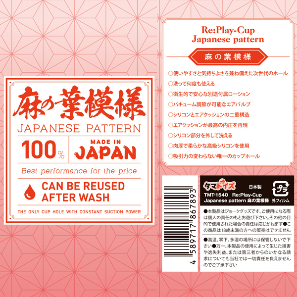 HOME> オナホール > オナカップ(使い捨てホール) > Re:Play−Cup Japanese pattern (麻の葉模様)