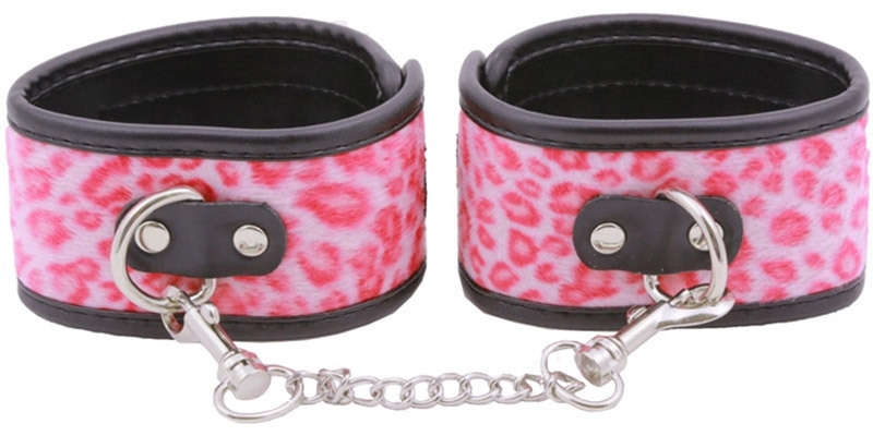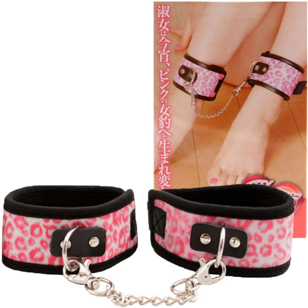 可愛いだけじゃない!実用性もしっかり兼ね備えたSMプレイ用足枷。●両足首に巻いて固定する定番足枷●ピンク×豹柄のキュートデザイン●本格的レザー風生地×ファー生地●マジックテープでカンタンに着脱●装着サイズも細かく自在調節可能●チェーン部分は取り外しOK。レザーのような質感と金属の重厚感…そんなハードさに鮮やかなアニマル柄をドッキングした女性向けSMグッズ。同シリーズの手枷(v00979)と組み合わせたりと色々楽しめます。