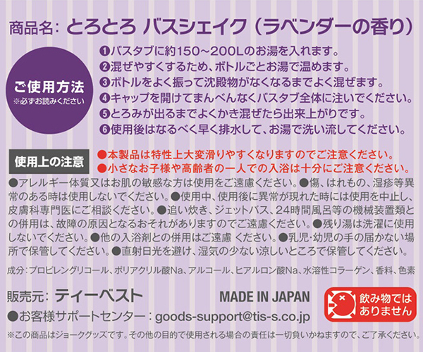 HOME> ソープグッズ > 入浴剤(ローション風呂) > とろとろ バスシェイク (ラベンダーの香り)
