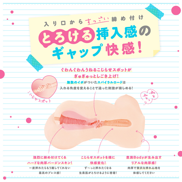 ハードtoソフト!快感変化のギャップ構造。ぐわんぐわんうねるこじらせスポット搭載!ずっしり肉厚540gの豊満Bodyはとっても贅沢な挿れ心地!強烈に締め付けるハードなバージンスキンの入口から、ずーと挿れたくなるようなとろとろソフト素材への快感の変化を楽しめます!真ん中に配置されたこじらせスポットは、ピストンのたびにぎゅぎゅっとしごき上げ!締め付け・こじらせ・生柔肌の3つの快感。贅沢な挿れ心地を体感してください。
