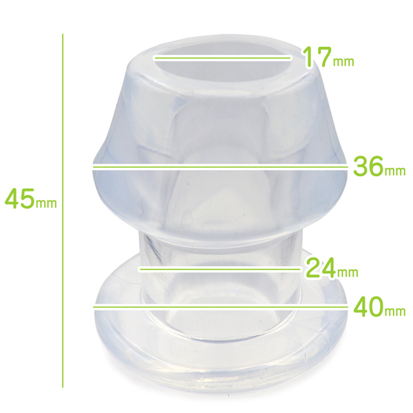 クリアカラーで内部丸見え!内部穴360度見渡せる極上の光景幅広いプレーが可能な多用途プラグ柔軟性と形状保持力を備えた透明色の拡張アイテムです。拡張プレイだけでなく観賞や洗浄、ローション注入等、幅広く活用できます。5サイズ展開はレディース、メンズ、初心者、上級者と使い分けが可能。ご自分の判断でご利用ください。素材:TPRサイズ:XSサイズ全長:45mm 最大幅:36mm(底部を除く)空洞内径:17mm