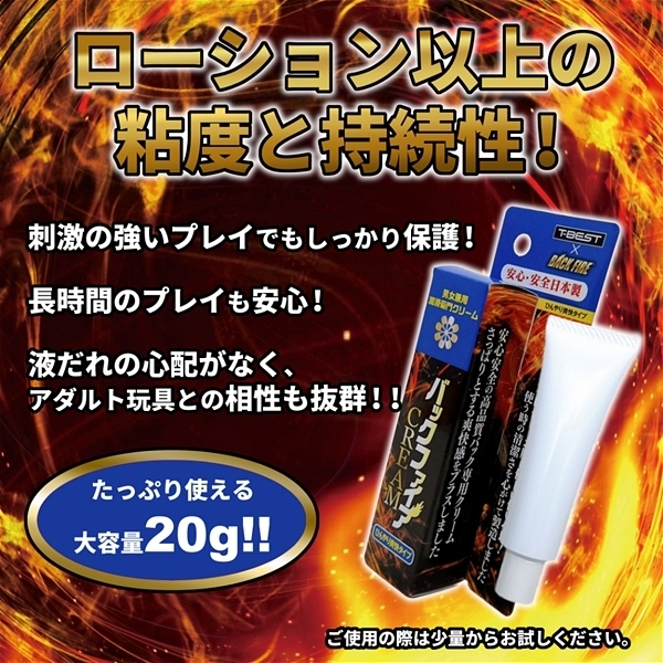 バックファイアーからア●ル専用クリームの登場です!少量の使用で長時間のプレイが可能!ローションのタイプより持続するので、乾きにくくプレイに集中できます。驚きの潤滑性!クリームの特性をいかし驚きの潤滑性を実現しました。ローションと異なり、液だれの心配がなく、アダルト玩具との相性も抜群です。ミネラルオイル配合で乾きにくく、肌にも優しい成分を使用しています。ひんやり爽快タイプは爽快感をプラスしました。ス〜とする爽快な感じが最高です!また、グリセリンを配合していないので、おなかが緩くなったりしません。ノンラベル仕様なので、鞄などに入れて持ち歩いても、ア●ル用クリームとばれないので安心です。