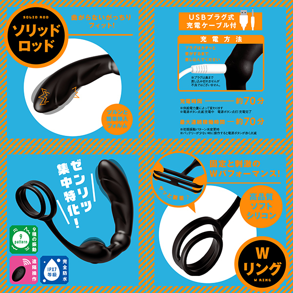 ★Sサイズだからしっかり当たる!ゼンリツ集中責め!!初めてにもオススメ!★PPPより少し小さめのアナニーバイブが登場!曲がらない仕様でがっちりフィットするソリッドロッドがググっと密着責め♪2箇所に配置された超強力Wモーターがゼンリツを超絶に振動&会陰悶絶振動で激しく責め立てる!Wリングはサッと装着!バイブをしっかり固定且つ、振動がしっかり伝わりビュルっと感を誘発します!肌ざわり滑らかな高品質ソフトシリコンでツルンと簡単挿入フォルム。浅めなゼンリツに特化した快感刺激★女の子みたいにイケるメス堕ちイキ仕様の優秀バイブ!いろんな遊び方を模索して、もっと新しい快感を見つけてくださいね!本体は充電式なのでエコに使用可能。完全防水で浸水も気にならずお手入れ簡単!絶頂を手元でコントロールできるリモコン付き!●充電時間約70分(供給電力量によって変わります)。●最大連続稼働時間約70分(初期振動パターン未変更時)●完全防水のIPX7等級9パターン振動●付属品:電池式リモコン、USBプラグ式充電ケーブル