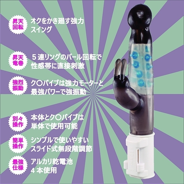 5連パールのトルネード回転と超爆振ク〇バイブで一気に昇天。挿入部はモチモチ素材を採用し、従来のザ・バイブのカタチから少し変えて丸みを帯びた形状へ変更。スムーズな挿入と局部内を優しく圧迫します。丸いのでGス〇ットへのアプローチもスムーズで奥イキ派のニーズにもしっかり答えてくれます。大粒5連パールリングは局部内でトルネードのようにグリグリ回転。ポ〇チオをグリングリン刺激し一気に火照りMAX。ク〇バイブはかなり強力なので要注意。このク〇バイブだけでも十分に愉しめるのに、Gス〇ット・ポ〇チオ、ク〇トリスの3点攻めで大満足。潮ふき昇天すること間違いなし!本体とク〇バイブは別のコントローラーなので使い勝手のきく仕様。自分好みに育てて下さい。●カラー:ブルー