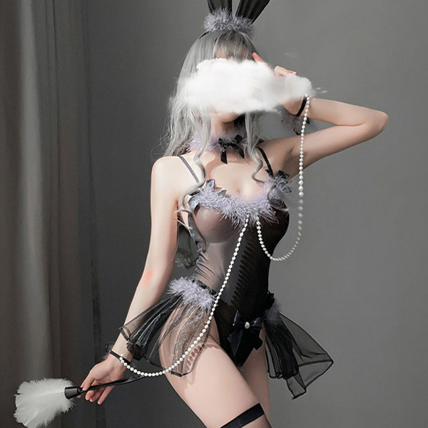 パール手枷付き大人バニー (ブラック)