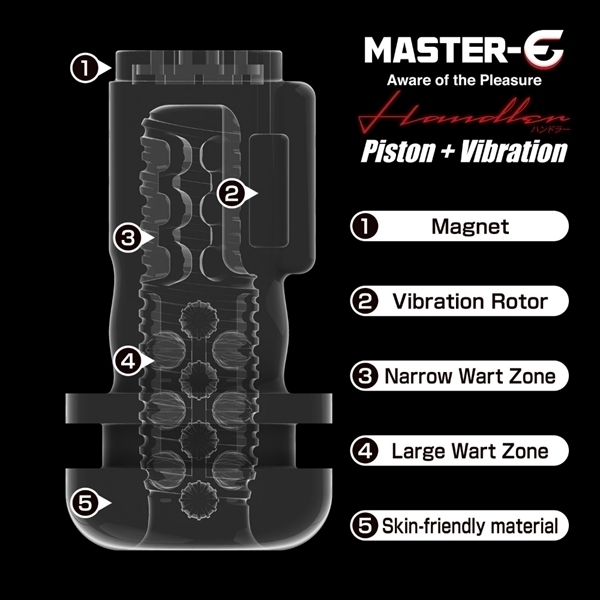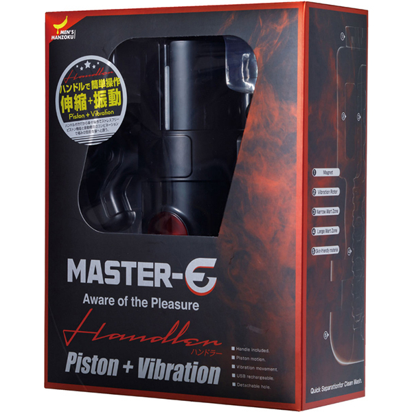 男性のセルフケアを追求し、快適で新しい快感の形を目指す『Master-E』シリーズ。単純な機能だけではなく、持ちやすくストレスフリーで遊べる電動セルフケア・ガジェットの登場です。このハンドラーは振動とピストン機能を搭載した電動セルフケア・ガジェットです。全体を包み込み上下に揺れることで官能的な刺激を与え、小刻みに震えることで快感を増幅させます。全9種類の振動・ピストンパターンを搭載しており、お好みの官能を得られることでしょう。またハンドルが付いており、持ちやすさが大幅にアップ!ストレスなくプレイを体感することが可能です。ホール部分には人肌に近い弾力素材を採用し、使用感は抜群。またホールと本体を簡単に分割することができるので、使用後はホールを洗浄し、清潔さを保つことができます。便利なUSB充電式を採用し、およそ60分の充電で、60分間の使用が可能です。ストレスなく、気軽に、ピストン&振動を楽しむことが可能なMASTER−Eハンドラー。電動セルフケア・ガジェットの新たな地平をお楽しみください。