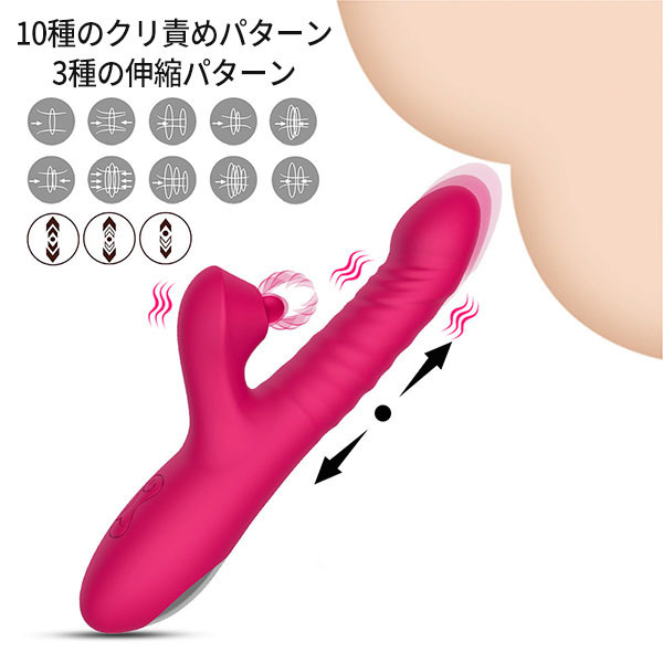 ピストンで膣を責めつつクリトリスを絶頂刺激!気持ちの高まりと共にピストンスピードを上げ、更にはクリトリスを高速ノックで最強クンニ、あなたを絶頂へと導きます♪生活防水でお手入れも簡単、衛生的に保てます。クリを刺激する突起が振動パターンによって踊るような動きを見せ、今まで感じた事のない快感を与えます。<使い方>電源ボタンを長押しで電源を入れ、電源ボタンを短押しでピストンスピードを3段階で調整、唇マークのボタンを短押しする度に10パターンの振動が切り替えられます、電源ボタンを長押しで電源を切ります。